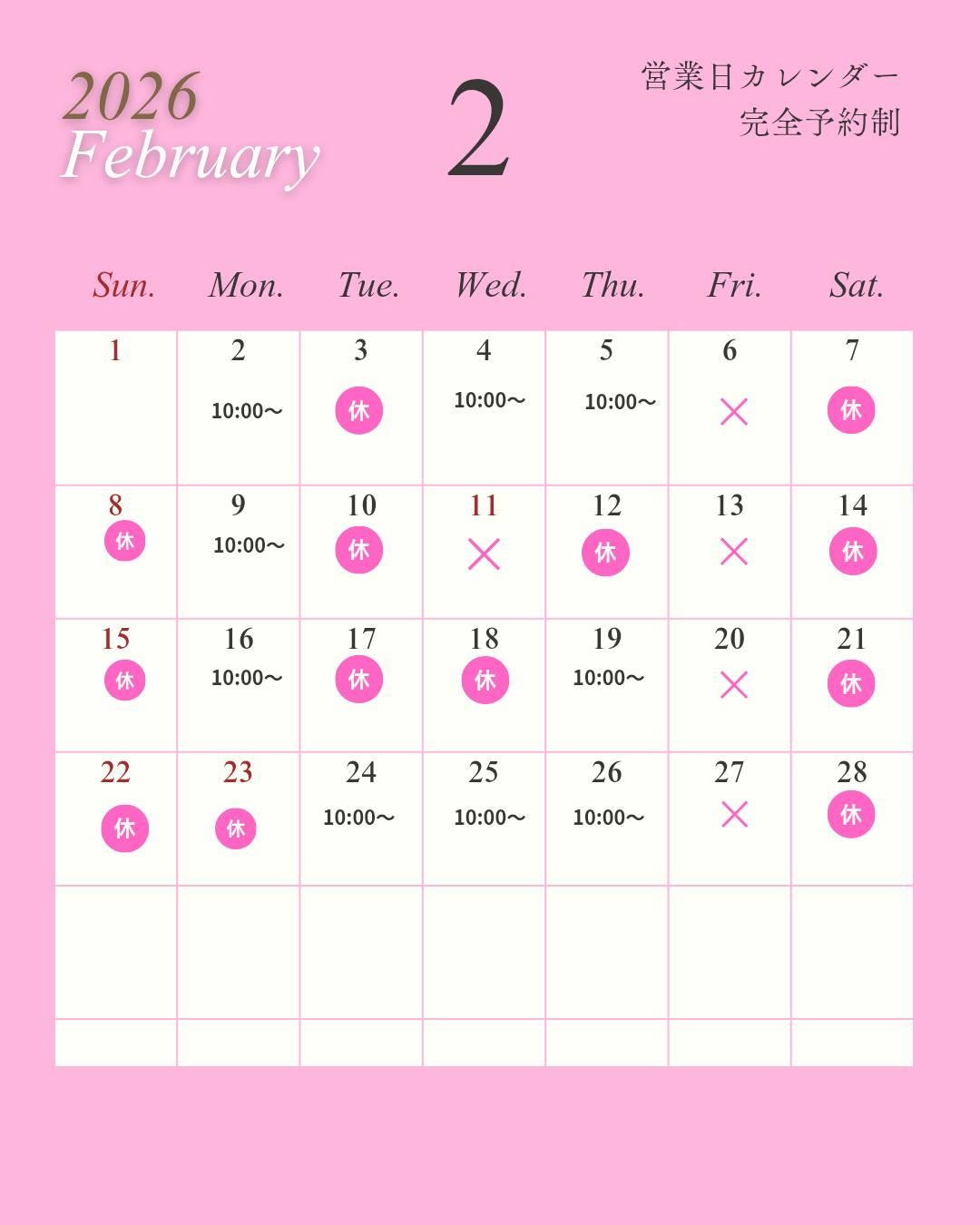 2026年2月カレンダー